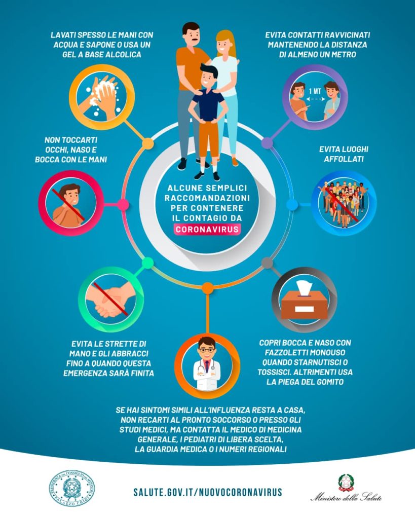 FEBBRE E QUARANTENA. Chi abbia sintomi da infezione respiratoria e febbre maggiore di 37,5 gradi centigradi, è “fortemente raccomandato” di restare a casa e contattare il proprio medico. Il divieto di muoversi è “assoluto” per chi sia stato messo in quarantena o sia positivo al virus.