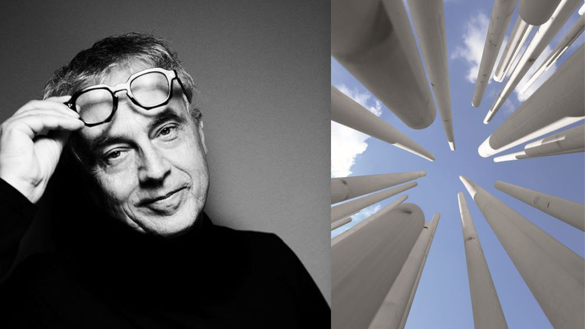 Oggi, a quello stesso invito risponde Boeri con un prototipo di spazio pubblico, Radura degli abbracci, declinazione del progetto Radura (2016), che qui si compone di novantacinque cilindri di legno d’abete di cinque metri di altezza e sei centimetri di diametro, che creano un luogo al contempo permeabile e intimo, in cui i visitatori possono accedere per vivere un’esperienza originale di contatto con la natura, accompagnati dalla suggestiva melodia del violoncello di Piero Salvatori con il brano “Visioni”.