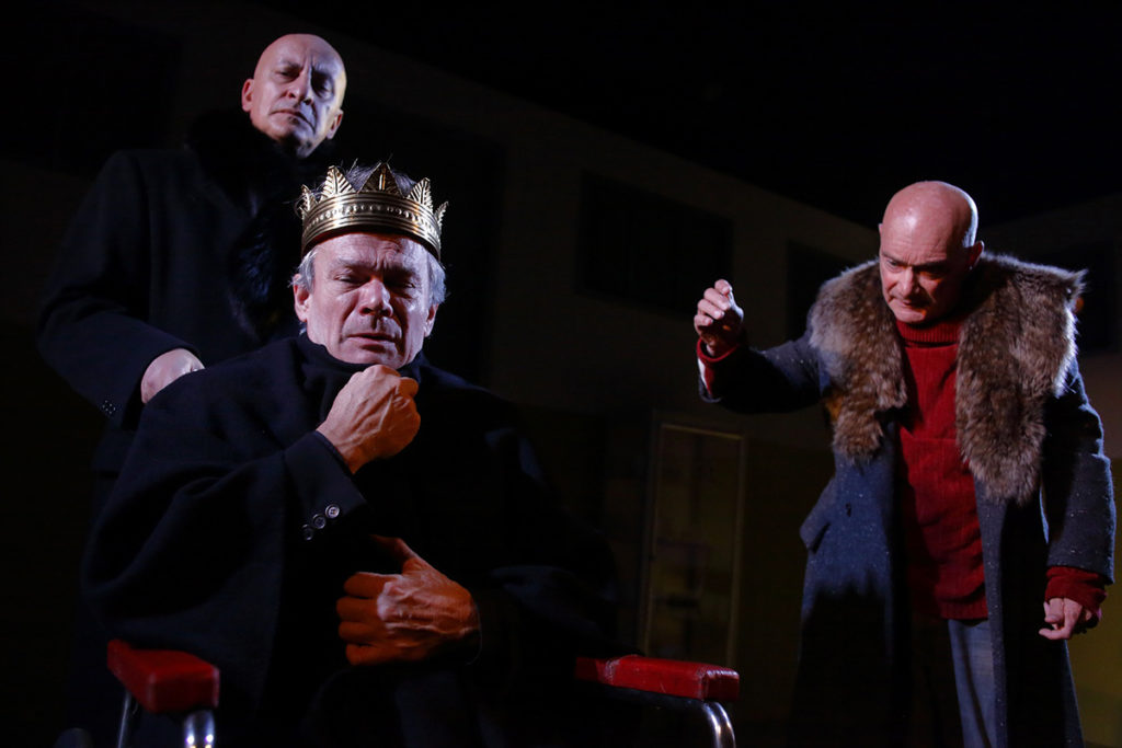 “Riccardo3 / L’avversario” (produzione Arca Azzurra Produzioni, con scene e costumi di Mela Dell’Erba e luci di Max Mugnai) affronta il tema dell’assassinio, l’infrazione di uno dei più antichi tabù, mettendo a confronto il capolavoro del Bardo inglese con la vicenda di Jean-Claude Romand, sedicente medico e pluriomicida francese che nel 1993 sterminò la propria famiglia pur di non rivelare il proprio fallimento e l’inganno nel quale era vissuto per anni. Una storia terribile, raccontata da Emmanuel Carrère nel romanzo “L’avversario”, da cui è stato tratto l’omonimo film diretto da Nicole Garcia, in concorso al Festival di Cannes 2002 e che ha ispirato anche “A tempo pieno” di Laurent Cantet: un uomo reinventa se stesso, costruisce la sua esistenza su un cumulo di menzogne, recitando una parte finché il suo castello crolla ed egli è disposto a compiere una strage pur di non dover ammettere la verità. Riccardo III rivela i suoi progetti e chiama il pubblico come testimone dei suoi delitti, partecipe e quasi complice della sue nefandezze: incarnazione del male assoluto, individuo senza coscienza né pietà, egli sembra trarre piacere e ragione di vanto dalla propria discesa agli inferi, da quell’abisso di orrore e terrore, pur conservando fino all’ultimo la finzione d’essere uno spirito eletto, mite, religioso e pio, amante della filosofia e della lettura, a dispetto del suo passato d’uomo d’armi, che ne ha fatto l’erede ideale al trono d’Inghilterra. Il sovrano indossa una maschera di virtù e trama nell’ombra, mentre nella realtà della cronaca Jean-Claude Romand riesce a simulare la riuscita negli esami, la successiva abilitazione e perfino una carriera da professionista della medicina, e parallelamente a mantenere la sua famiglia, ignara, grazie ai prestiti di amici e conoscenti: entrambi sembrano nutrirsi, in un gioco di specchi, delle proprie invenzioni, finché, inesorabilmente, la verità viene alla luce.