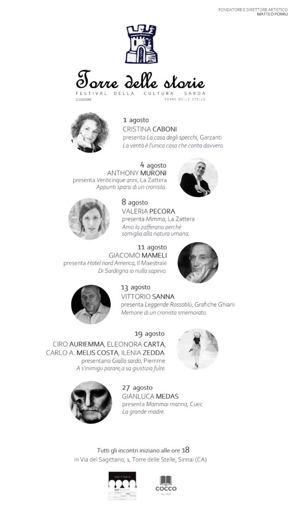 Dall’1 al 27 agosto, a Torre delle Stelle, si inaugura la rassegna estiva “Torre delle storie”, otto incontri con le più grandi voci della letteratura e della cultura sarda.