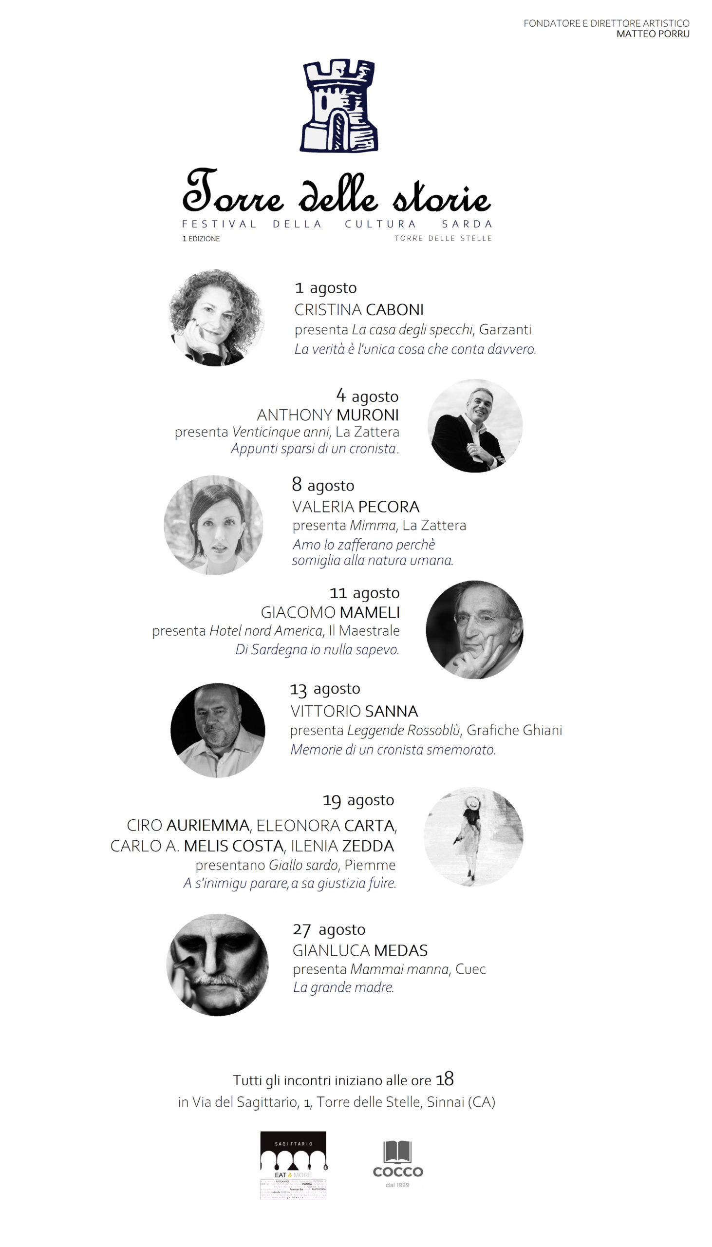 Dall’1 al 27 agosto, a Torre delle Stelle, si inaugura la rassegna estiva “Torre delle storie”, otto incontri con le più grandi voci della letteratura e della cultura sarda.