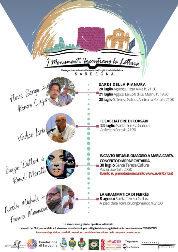L’apertura della nona edizione è affidata a Flavio Soriga e a Renzo Cugis, il 20 luglio, ad Aglientu, in piazza Alivia, a partire dalle 21:30. Il titolo del reading è “Sardi della pianura”.