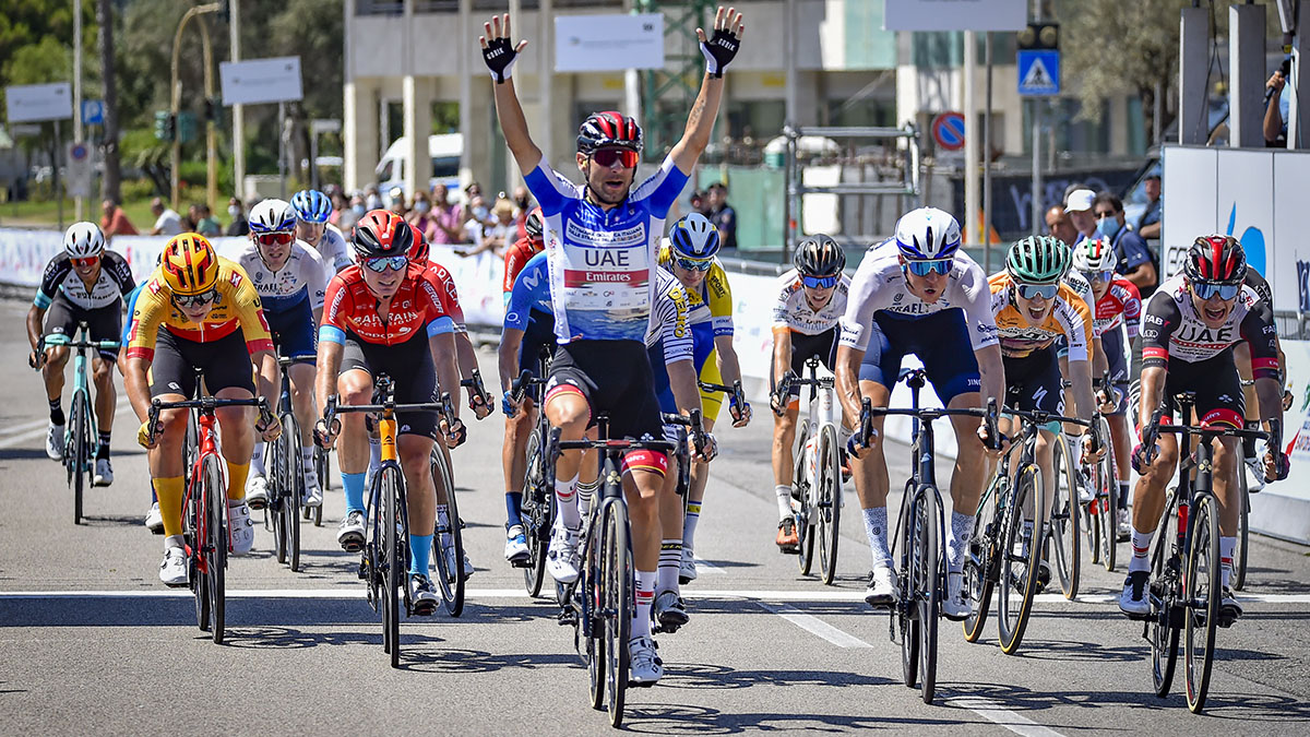 Il portacolori della UAE Team Emirates nello sprint finale si è imposto su un drappello di 22 unità precedendo il compagno di squadra Alexandr Riabushenko e il belga Sep Vanmarcke (Israel Start-Up Nation), già terzo nella seconda tappa ad Oristano.