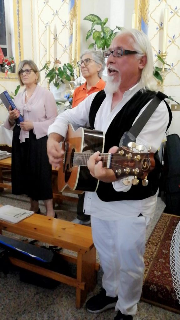 Ad animare la messa è stato il coro parrocchiale che, durante il cambio della bandiera, ha visto l’inserimento di una voce di eccezione, quella di Beppe Dettori che ha intonato Deus ti salvet Maria.