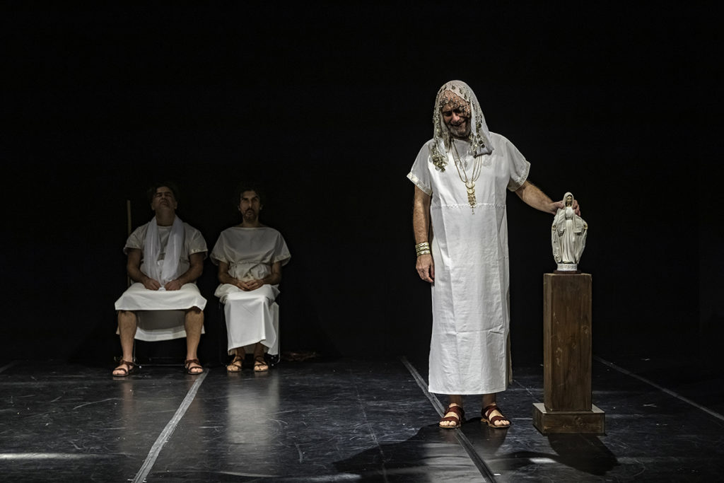 Tra ironia e dramma con “Andromaca” da Euripide, uno spettacolo di Massimiliano Civica e I Sacchi di Sabbia con Gabriele Carli, Giulia Gallo, Giovanni Guerrieri e Enzo Iliano – in cartellone venerdì 26 luglio alle 20 al Teatro Romano di Nora per una moderna rilettura dell’antica tragedia come una grottesca danse macabre. La gelosia di Ermione, sposa di Neottolemo, per la vedova di Ettore, ridotta in schiavitù, si spinge fino a desiderare la morte della rivale, che ritiene colpevole della propria sterilità, e del figlio che costei ha generato dal marito. In assenza del re gli eventi precipitano: sopraggiungono Menelao, padre di Ermione e Peleo, padre di Achille e nonno di Neottolemo, l’uno per sostenere la vendetta della figlia l’altro per ostacolarla e salvare il bambino. Ciascuno persegue i propri fini in attesa del ritorno del sovrano, ma quell’agitarsi e discutere si rivela vano, il fato ha deciso altrimenti e tutto si riduce a un vuoto gioco di maschere.