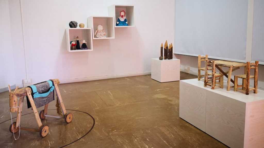 All’interno del Museo, i giocattoli tradizionali sono esposti su strutture modulari in canna sia per creare un percorso espositivo tra differenti settori della collezione, sia per rimanere, esteticamente parlando, il più fedeli possibile ai materiali antichi di utilizzo.