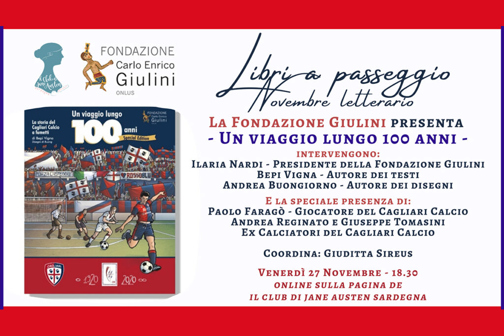 Il Novembre letterario organizzato da Il club di Jane Austen Sardegna si chiude con un imperdibile appuntamento, realizzato in collaborazione con la Fondazione Carlo Enrico Giulini, domani alle ore 18:30 sulla pagina social Facebook del circolo letterario.