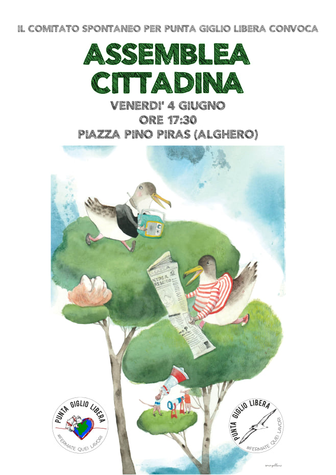 Fin dall’inizio dei lavori a Punta Giglio, si è costituito un comitato spontaneo trasversale e popolare, per informare e sensibilizzare tutti i cittadini (che mai sono stati informati e resi partecipi di quanto si stava progettando) e promuovere insieme a loro azioni legali e pacifiche che possano servire alla causa, come la raccolta firme, l’esposizione di lenzuoli fuori da finestre e balconi, i sit-in informativi, i presidi a Punta Giglio, gli incontri con le borgate del Parco di Porto Conte, e tutto ciò che sarà necessario per sensibilizzare e informare la cittadinanza e per tenere alta l’attenzione sulla cessione gratuita di un bene incontaminato e identitario per la comunità algherese e sarda.