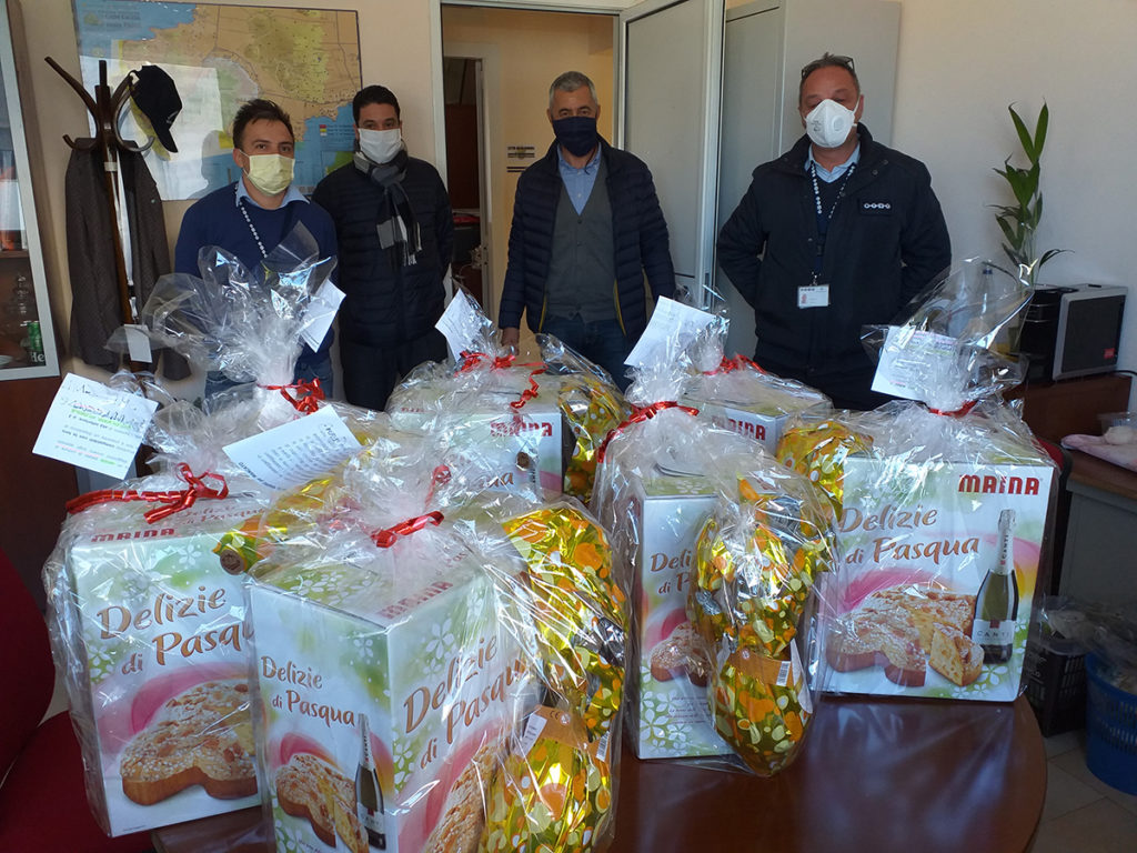 Molto gradita ieri la visita dei dipendenti Arst, che hanno voluto donare le colombe pasquali a tutte le associazioni di volontariato attive nell’emergenza, mentre da parte di commerciante del quartiere Sant’Agostino sono state donate 40 tute protettive.