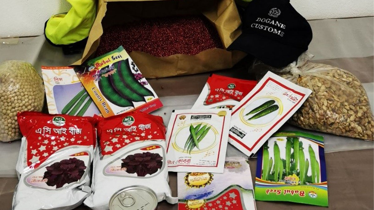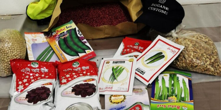 Alghero. Nell’ambito dei controlli volti a contrastare i traffici illeciti, i funzionari dell’Agenzia delle Accise, Dogane e Monopoli (ADM) di Sassari, in servizio presso la Sezione Operativa Territoriale dell’aeroporto “Riviera del Corallo” di Alghero, in collaborazione con i militari della Guardia di Finanza della Compagnia di Alghero, hanno fermato e sottoposto a controllo un passeggero proveniente dal Bangladesh, via Roma Fiumicino, che deteneva nel bagaglio a mano un collo del peso di kg. 3,220 circa, costituito da vegetali (semi) privi di confezione ed etichetta che ne attestasse l’origine e la specie, oltre che 9 bustine e una scatoletta di alluminio del peso di kg. 1,350 contenenti vegetali, privi di etichettatura.