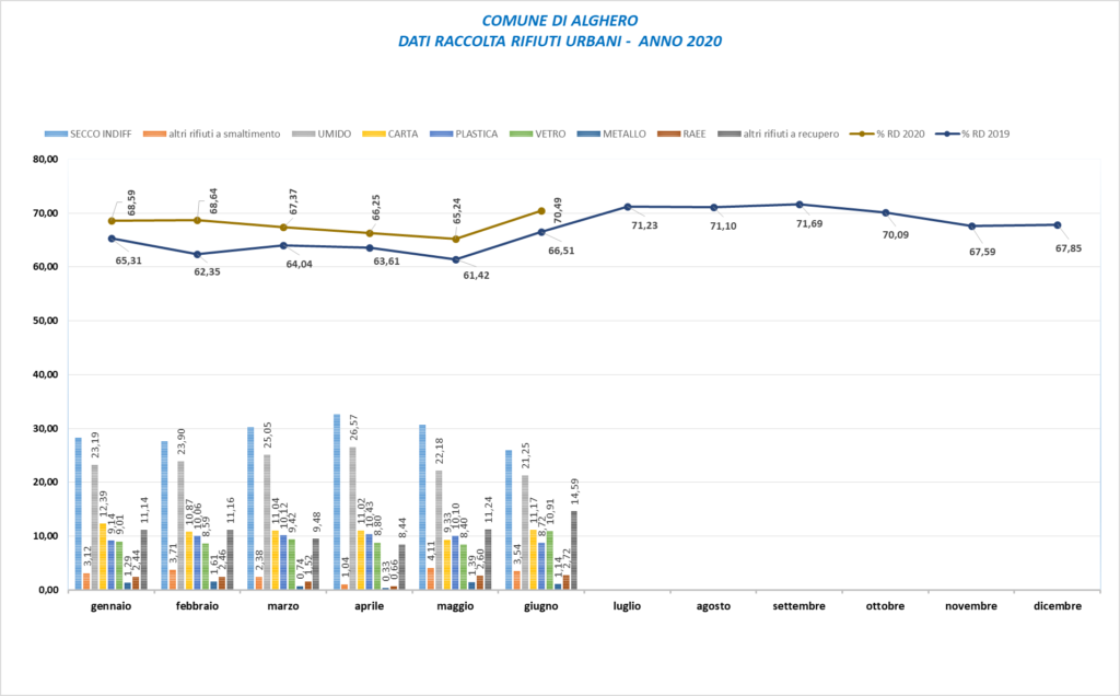 “È un segnale positivo che conferma l’impegno e il rispetto per la propria città dei cittadini e delle attività commerciali di Alghero; è un segnale positivo perché conferma anche l’inizio della ripresa delle attività commerciali dopo il periodo di massima emergenza” commenta l’Assessore all’Ecologia Andrea Montis. Se infatti nei tre mesi di lockdown si è registrata una forte riduzione complessiva della produzione dei rifiuti di circa il 25% rispetto allo stesso periodo dell’anno scorso, nel mese di giugno la riduzione si riduce al 11%.