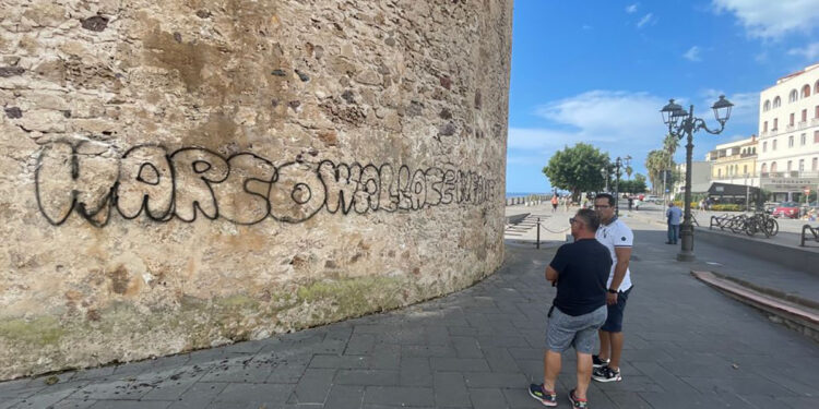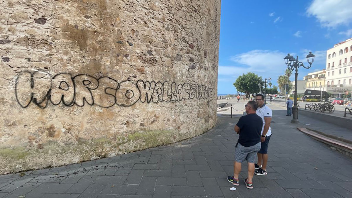 Alghero. Intervento immediato questa mattina per procedere alla rimozione dello sfregio sulla Torre di Sulis, dove ieri notte il gesto sconsiderato di qualcuno ha imbrattato il monumento.
