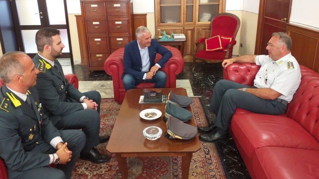 Incontro a Porta Terra del Sindaco Mario Conoci con il Comandante Provinciale della Guardia di Finanza, Col. Giuseppe Cavallaro, accompagnato dal Capitano della Compagnia di Alghero Angelo Catalano e dal Comandante della sezione operativa navale Francesco Mandica.