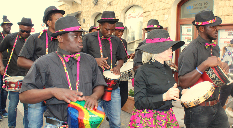 Al ritmo delle percussioni, accompagnati dal battito di mani del pubblico, dai cori melodici e della tradizione nigeriana. È stata una parata festosa l’esordio della Jaama Dambé Marching Drums, la band itinerante di percussionisti formata dagli ospiti dei centri di accoglienza Baja Sunajola di Castelsardo e Vel Marì di Alghero. Un gruppo musicale di venti persone, tra ragazzi e ragazze africani provenienti da Nigeria, Gambia, Senegal e Ghana, che ha partecipato come ospite all’evento Jazz Island for Unesco, la giornata internazionale promossa dall’Agenzia Onu per l’educazione, la scienza e la cultura e inserita nel programma del più ampio festival JazzAlguer diretto da Paolo Fresu.