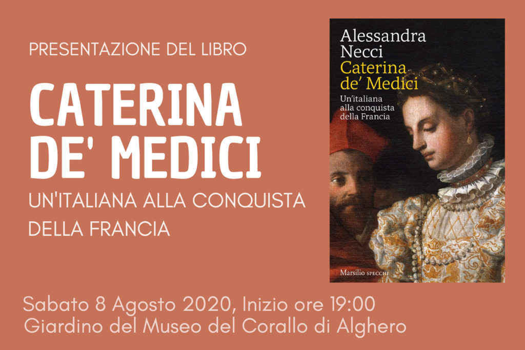 Continuano gli eventi della rassegna culturale “Alghero finalmente vacanza”, promossa da Comune, Fondazione Alghero e Fondazione di Sardegna nel quadro delle attività che animeranno l’Estate della Riviera del Corallo. Sabato 8 agosto alle ore 19:00, presso il giardino del Museo del Corallo verrà presentato l’ultimo libro della scrittrice Alessandra Necci: “Caterina de’ Medici: Un’italiana alla conquista della Francia”, edito da Marsilio Editori. L’incontro è promosso da Giovanni Maria Chessa in collaborazione con la libreria Il Labirinto.