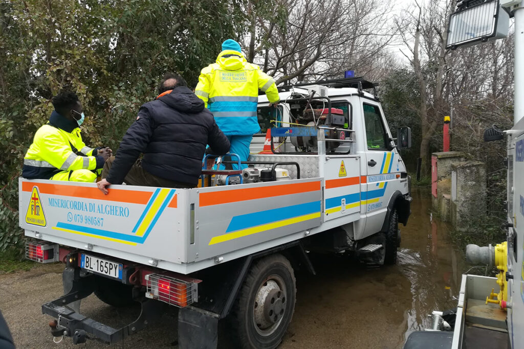 Sul posto i volontari della Misericordia di Alghero, che con i propri mezzi meccanici hanno provveduto a liberare dall’acqua le capanne interessate dagli allagamenti.