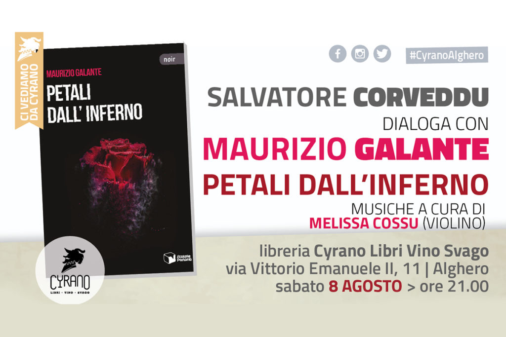 Sabato 8 agosto nuovo appuntamento con l’autore alla libreria Cyrano di Alghero. Alle 21:00 Maurizio Galante sarà ospite dello spazio all’aperto della libreria per presentare, accompagnato da Tore Corveddu, il suo nuovo romanzo “Petali dall’inferno”.
