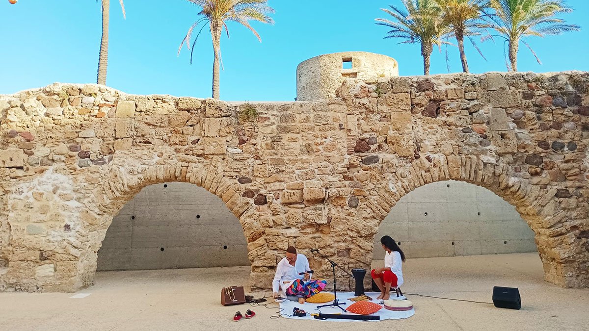 Piazza della Juharia si è trasformata in uno spazio ai confini del tempo, dove il sorgere del sole ha iniziato a scaldare le mura della città vecchia accompagnato dalla musica raga, della tradizione classica indiana e dai classici catalani.