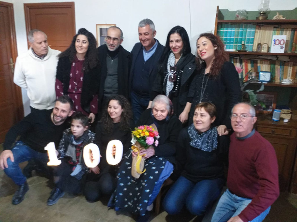 Il Sindaco Mario Conoci ha voluto fare gli auguri alla signora con un mazzo di fiori. La festa è stata preceduta dalla Santa Messa celebrata nel piazzale della casa da Padre Sebastiano Martinez.