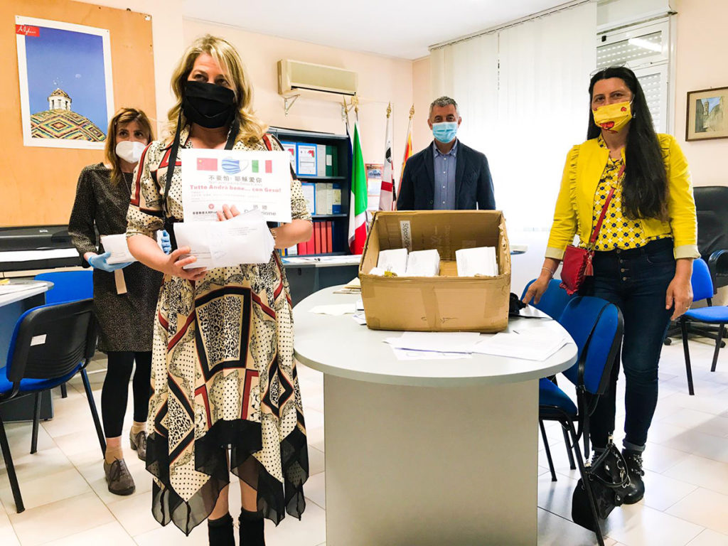 Si susseguono i gesti di solidarietà da parte dei cittadini algheresi. Oggi ancora una donazione di mascherine da parte della rappresentante della Chiesa Cristiana Evangelica di Alghero. La signora Antonella Di Perla, ha consegnato al Sindaco Mario Conoci e all’Assessore Maria Grazia Salaris 420 mascherine, per donarle ai vigili urbani e tutte le case di riposo di Alghero. Un gesto apprezzato dall’Amministrazione e dal Sindaco, che ha ringraziato la signora e i suoi collaboratori per la generosità dimostrata.