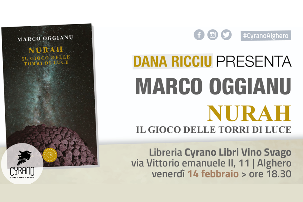 Venerdì 14 febbraio alle ore 18:30 la libreria Cyrano di Alghero, in via V. Emanuele 11, ospiterà Marco Oggianu che, accompagnato da Dana Ricciu, ci racconterà il suo ultimo romanzo Nurah, il gioco delle torri di luce (2019 – bookabook).