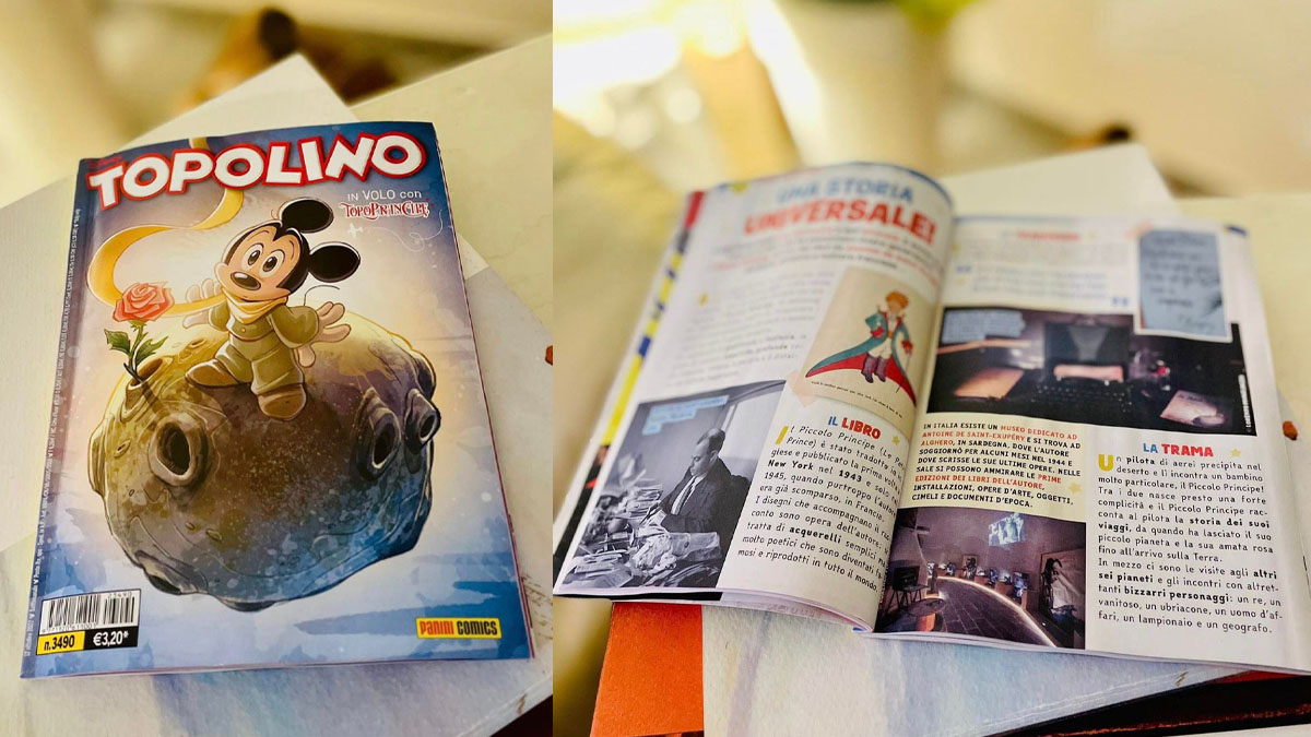 Ma non è finita qui, perché il Museo, proprio in questi giorni, ha avuto l’onore di un servizio giornalistico, in quello che è forse il fumetto più famoso al mondo: Topolino, che nel numero di ottobre celebra proprio il grande capolavoro di Saint-Exupery con un numero speciale, e all’interno, un servizio dedicato al Museo algherese.