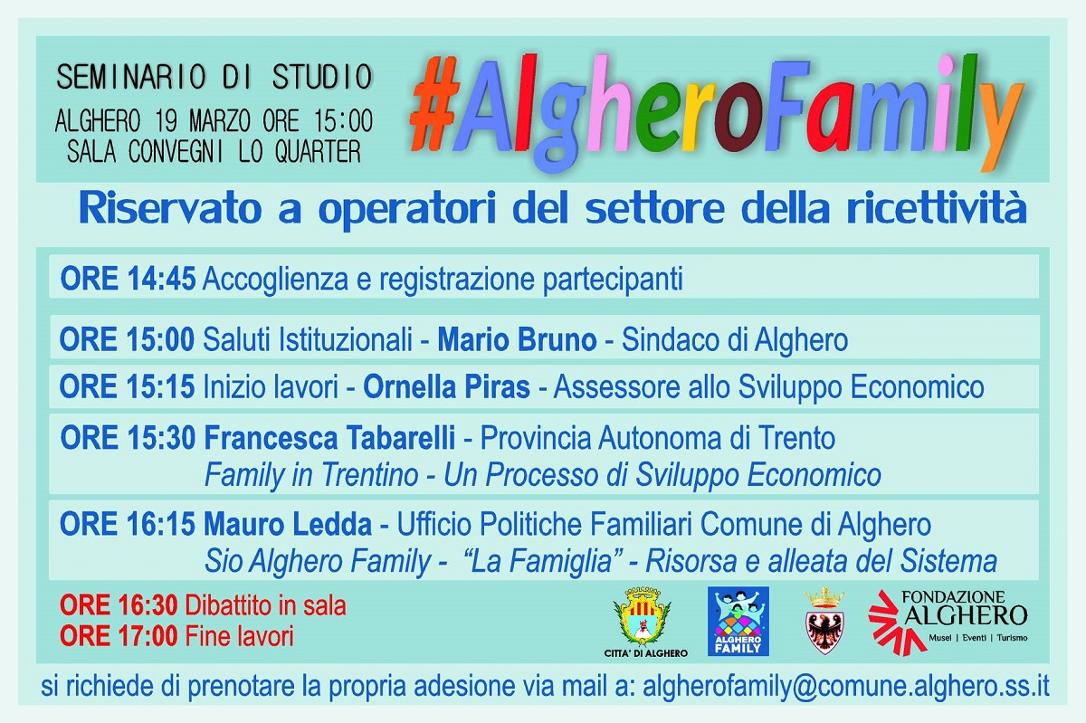Martedì prossimo 19 marzo, ore 15:00 presso la Sala Convegni del Quarter si terrà il seminario di studio #AlgheroFamily, approfondimento sul processo di certificazione Sio (Sistema Integrato dell’Ospitalità) riservato agli operatori del settore della ricettività.