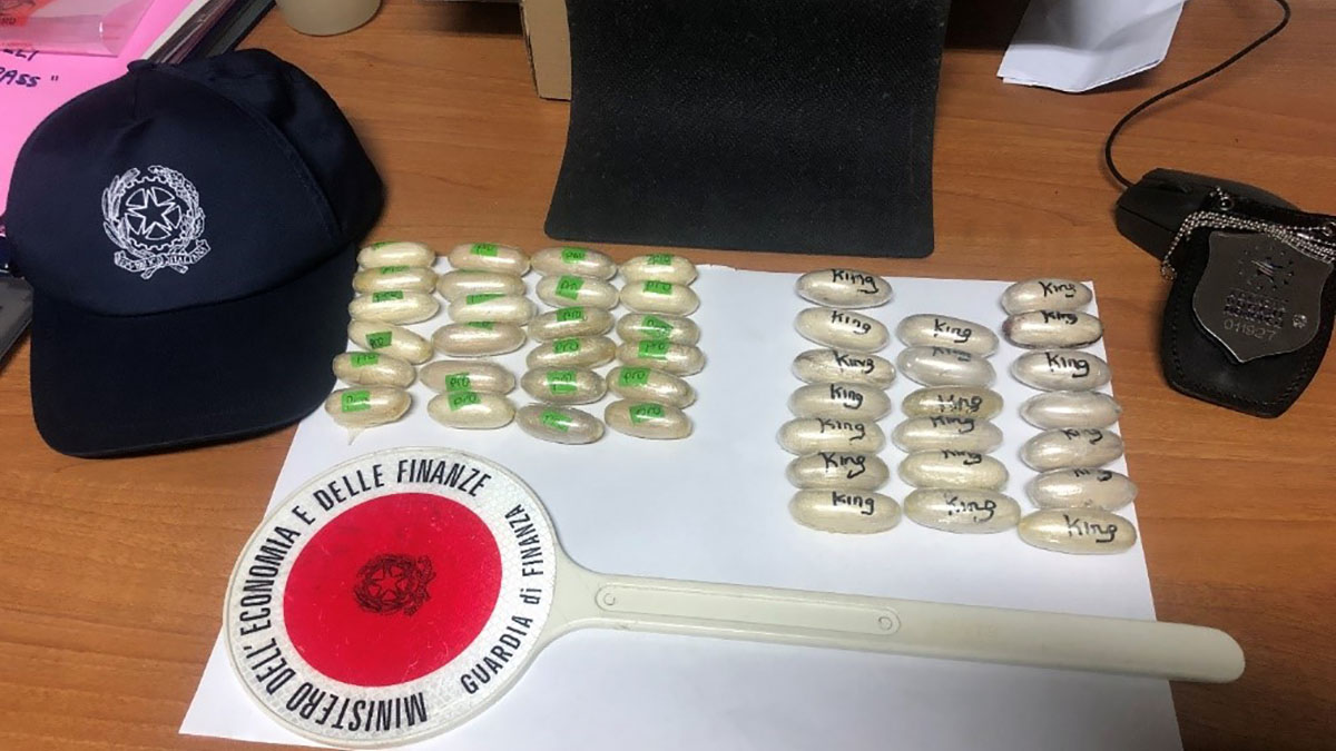 Fermata e sottoposta al controllo, alla domanda se detenesse sostanze stupefacenti, la donna rispondeva negativamente, ma a un controllo più preciso, venivano rinvenuti 6 ovuli, di cui 2 occultati nel bagaglio e 4 nelle scarpe indossate, contenenti complessivamente 84 grammi di una sostanza stupefacente, risultata essere eroina, come da esame speditivo eseguito mediante Drop test.