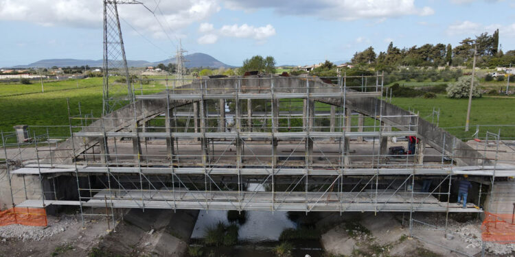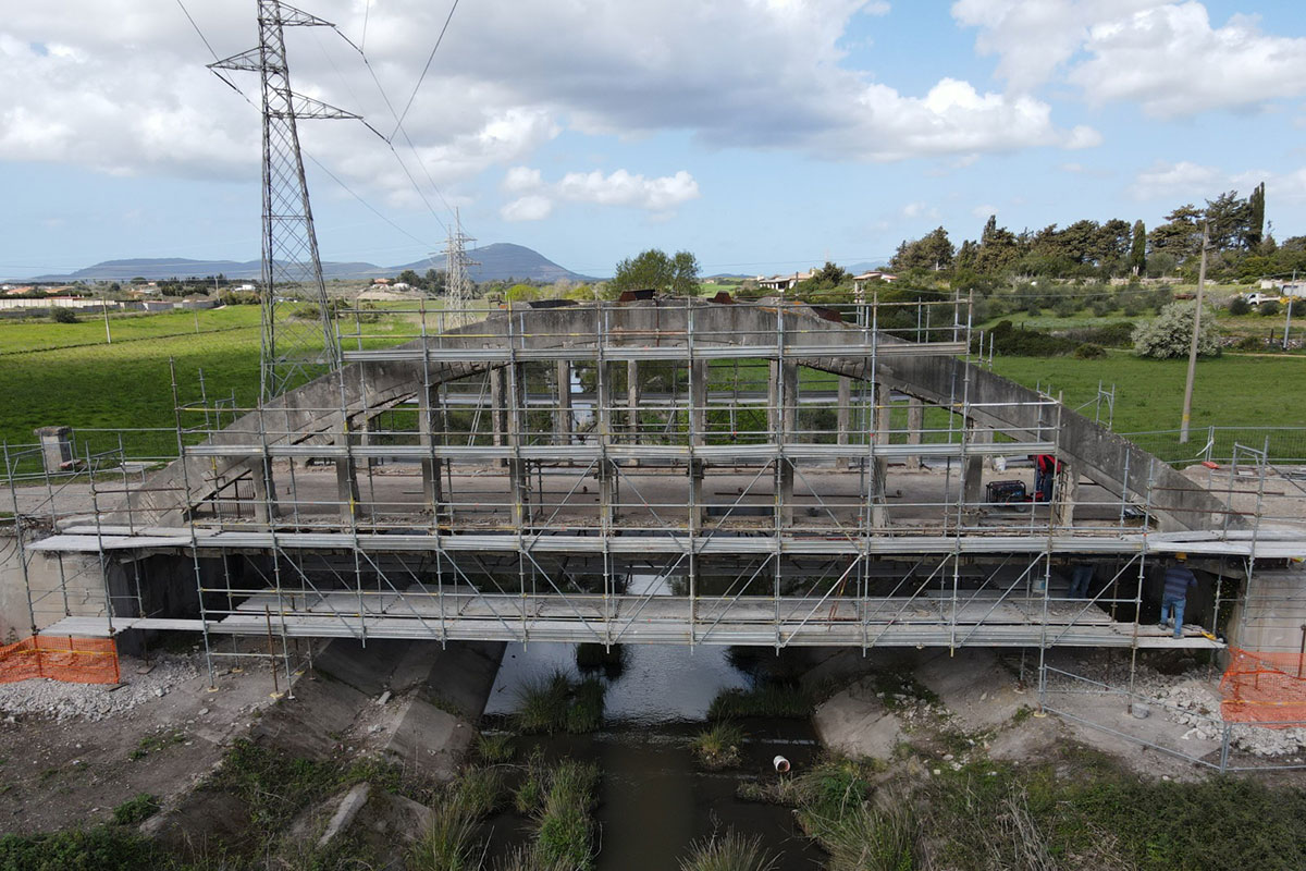Alghero, proseguono i lavori sul Ponte Serra. Completata l’impalcatura sul Rio Barca per le opere di ricostruzione