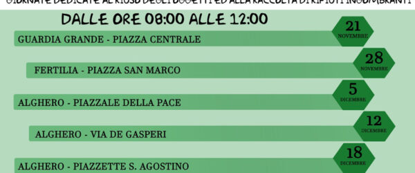 Arriva la seconda ondata del percorso itinerante della campagna di raccolta denominata “Desbarrassa – ne tot” con il quale i cittadini di Alghero e delle sue Borgate potranno disfarsi di rifiuti ingombranti ed elettrodomestici, depositandoli comodamente in punti di raccolta ben stabiliti. L’iniziativa dell’Assessorato all’Ambiente già testata la scorsa primavera ha avuto grande riscontro tra i … Leggi tutto Alghero, torna “Desbarrassa”, il ritiro in piazza dei rifiuti ingombranti