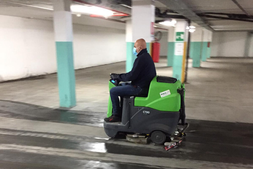 Diverse le attività che si stanno eseguendo, ad iniziare dalla pulizia straordinaria dei tre livelli dei posteggi interrati, dove le idro pulitrici stanno eseguendo lavaggi e sanificazioni. Sono interessate scale, muri, porte.