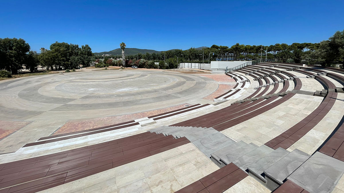 Il completo restyling dell’area di complessivi 5.400 mq – l’anfiteatro potrà ospitare fino a 7500 persone – è stato affidato nel febbraio scorso all’Impresa On Tecnology di Porto Torres, e comprende anche l’adeguamento del varco per le uscite di sicurezza e l’apertura di un nuovo accesso pedonale su viale Primo Maggio.