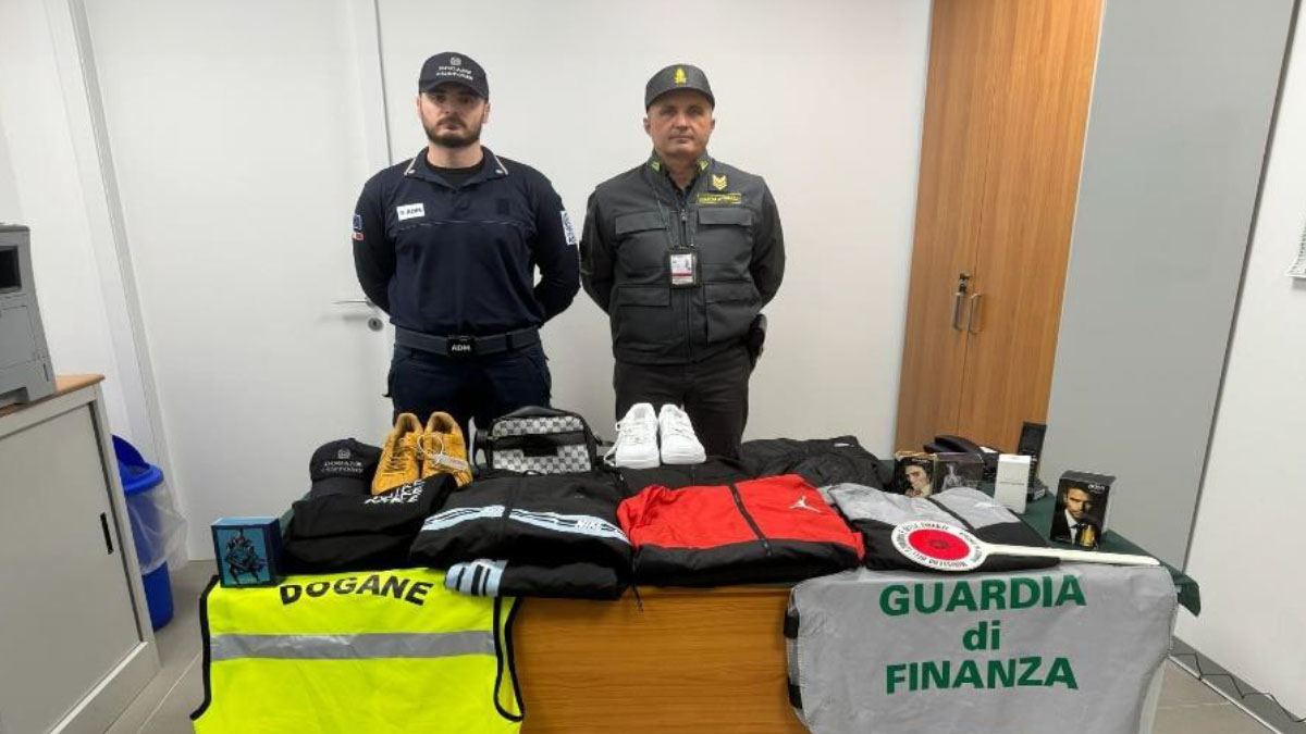 All’interno del bagaglio, imbarcato nella stiva dell’aereo, erano presenti n. 6 tute di marca Nike; 2 paia di scarpe Nike, un profumo Versace, una borsa Louis Vuitton, due profumi Hugo Boss, un profumo Chanel e un profumo Louis Vuitton, dei quali il detentore non è stato in grado di esibire nessun documento a corredo che attestasse l’origine e la provenienza dei prodotti.