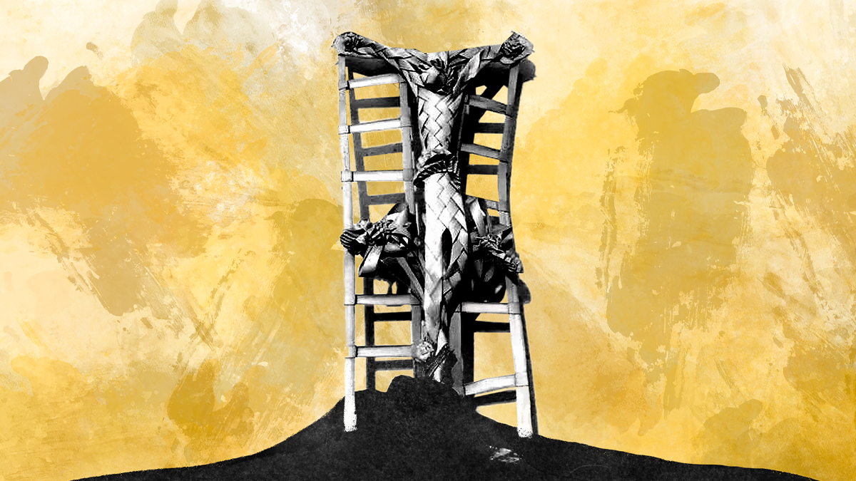 L’immagine che rappresenta i riti 2022 è opera di Martina Pintore, classe 4B. La studentessa si è ispirata alla cultura della palma in Sardegna “Sa pramma pintada” e al rito del Desclavament, la cerimonia più suggestiva del Venerdì Santo. Le antiche tecniche d’intreccio delle palme e i numerosissimi simboli che, dal Medioevo, fungevano da Biblia pauperum ed erano utilizzati da predicatori per insegnare il Vangelo agli analfabeti, assumono nel suo elaborato forma, vigore e simbolismi. Al centro della composizione appare il Cristo “intrecciato” in croce – simbolo della passione, morte, resurrezione e invito evangelico a imitare Gesù accettando mestamente anche la sofferenza. Ai lati, le scale rimandano al momento più intenso e drammatico del rito del Desclavament con il quale la collettività rivive il doloroso momento della Deposizione. In basso si scorge il Golgota, il luogo del Calvario fuori dalle mura di Gerusalemme che in tale immagine assume una forte valenza semiotica e racconta l’incontro dell’uomo con la Fede. Secondo e terzo classificato gli studenti Pietro Sechi 3A e Margherita Pinna 3B.
