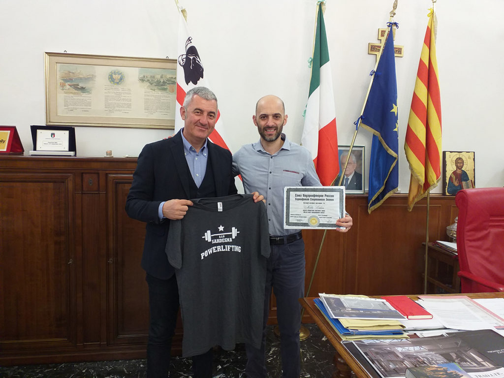 Mirko Calisai ricevuto oggi a Porta Terra dal Sindaco Mario Conoci. Campione del Mondo al World Powerlifting Championships in Irlanda, l’atleta algherese ha ricevuto i complimenti del Sindaco per l’ennesima impresa sportiva compiuta.