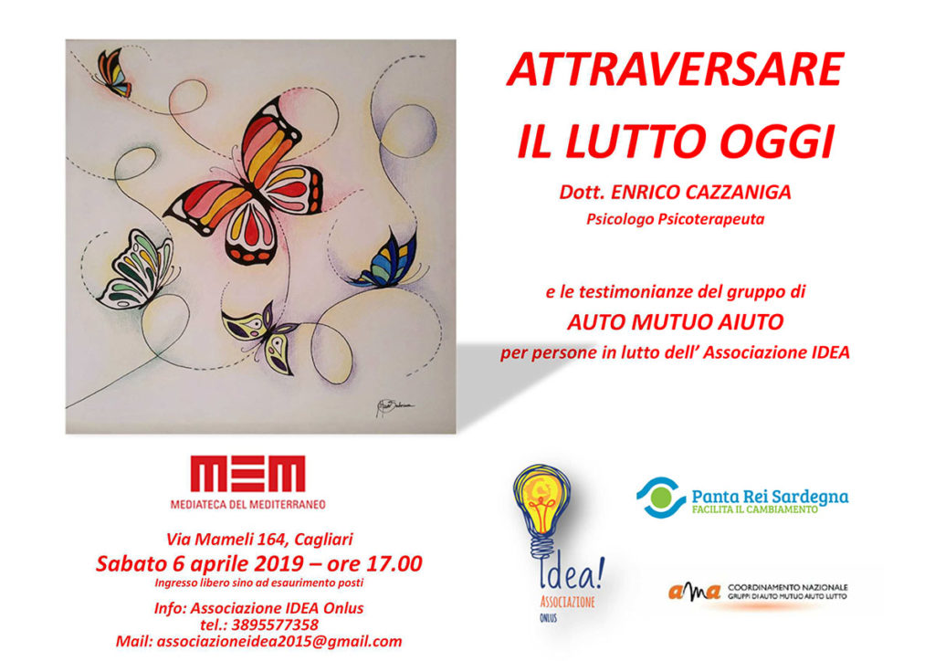 Organizzato dall’Associazione IDEA Onlus e dal Centro Panta Rei Sardegna, si terrà sabato 6 aprile 2019 nello Spazio Eventi al primo piano della MEM – Mediateca del Mediterraneo di via Mameli 164 a Cagliari, l’evento: “Attraversare il lutto oggi”.