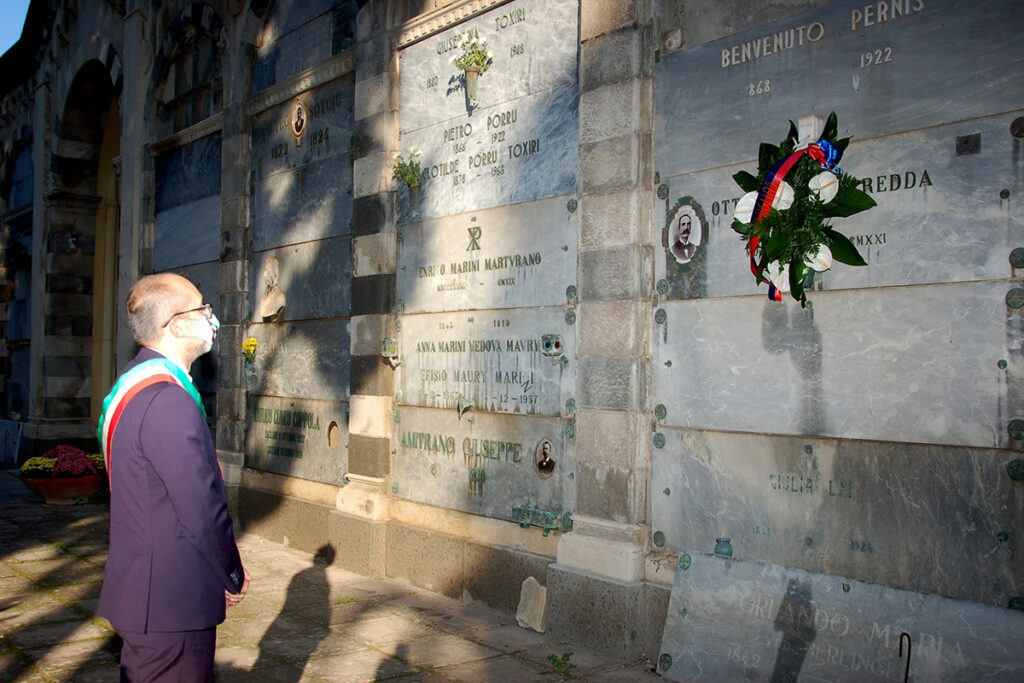 Il primo cittadino ha deposto alcuni cuscini di fiori in memoria degli ex sindaci defunti per poi spostarsi nel Cimitero di San Michele. Presso il Sacrario Militare, Paolo Truzzu ha preso parte alla cerimonia di commemorazione dei caduti che si è svolta in forma molto ristretta a causa delle limitazioni legati al contenimento della diffusione del Covid-19.