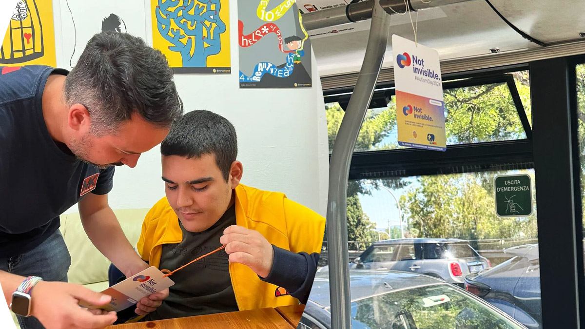 Il CTM, che ha sempre dimostrato un’attenzione particolare verso i temi che riguardano le persone fragili, anche quest’anno ha dato l’ok per un’importante attività di sensibilizzazione analoga a quella dell’anno scorso. L’attività è rivolta al pubblico viaggiante, che troverà, su ogni mezzo di trasporto, i “dondolini”: cartoncini, appesi ai sostegni tubolari metallici ai quali ci si mantiene durante il viaggio, sui quali è stata riportata la scritta “Not invisible.”, con riportato, più sotto, l’hashtag “#AutismDay2024”, per la promozione della Giornata Mondiale di consapevolezza sull’Autismo.