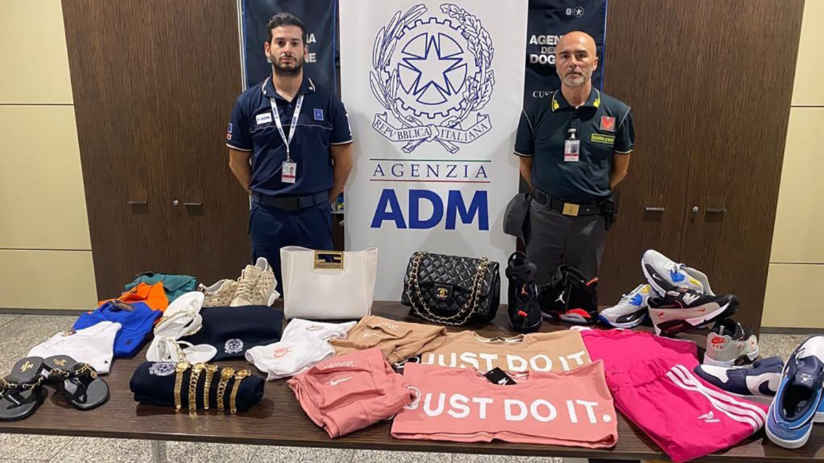 Cagliari. I funzionari dell’Ufficio delle Accise, Dogane e Monopoli (ADM) in servizio presso la Sezione Operativa Territoriale “Aeroporto M. Mameli” di Cagliari-Elmas, unitamente ai militari della Guardia di Finanza, 1° Nucleo Operativo Metropolitano di Cagliari, II Sezione Operativa dello scalo aeroportuale, hanno sottoposto a sequestro penale, per contraffazione, capi di abbigliamento sportivo costituito da scarpe da ginnastica marchio Nike, tute sportive Nike Just do it e Adidas, ma anche due borsette a marchi Fendi e Chanel, orologi da donna Michael Kors, Dior e Rado, oltre a maglie polo Ralph Lauren e calzature da donna marchio Chanel, per complessivi 23 articoli.