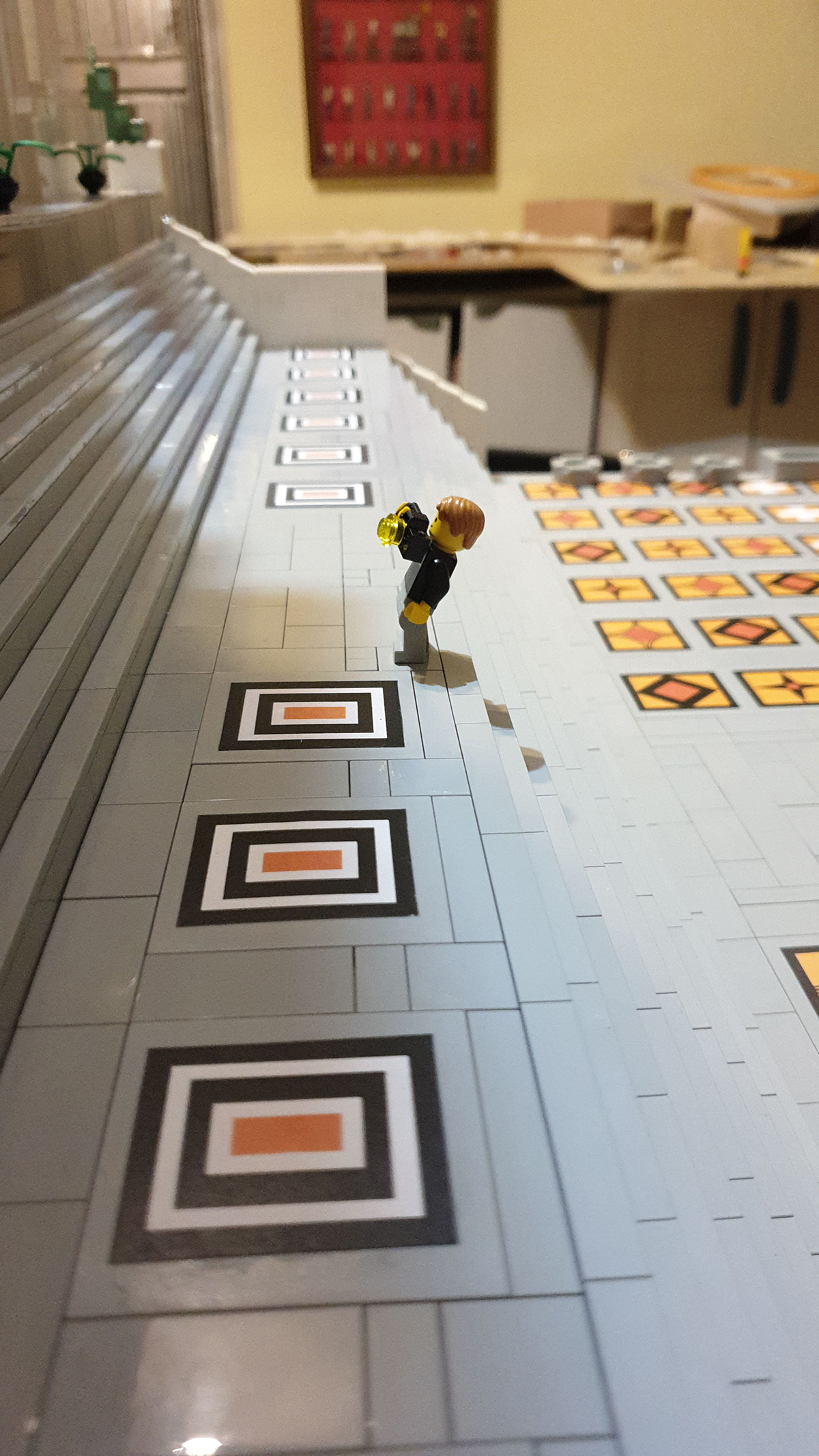 I 95 mosaici presenti sono tutti posizionati seguendo l’esatto ordine della piazza e le 3 rampe di scale corrispondono al numero dei gradini dell’originale.