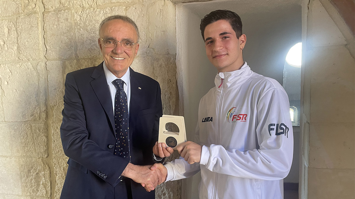 Il Sindaco ha ricevuto Timpanari, insieme ai suoi allenatori e alla madre, per complimentarsi personalmente con lui: “Hai raggiunto un grande risultato, e questo ti fa onore. Ti auguro di continuare sulla strada tracciata, perché lo sport è un’ottima palestra di vita, ci insegna a stare in società e ci stimola a dare il massimo per raggiungere i nostri obiettivi”, raccomandandosi poi di continuare “a mettere la stesso entusiasmo e la stessa passione anche nello studio”.