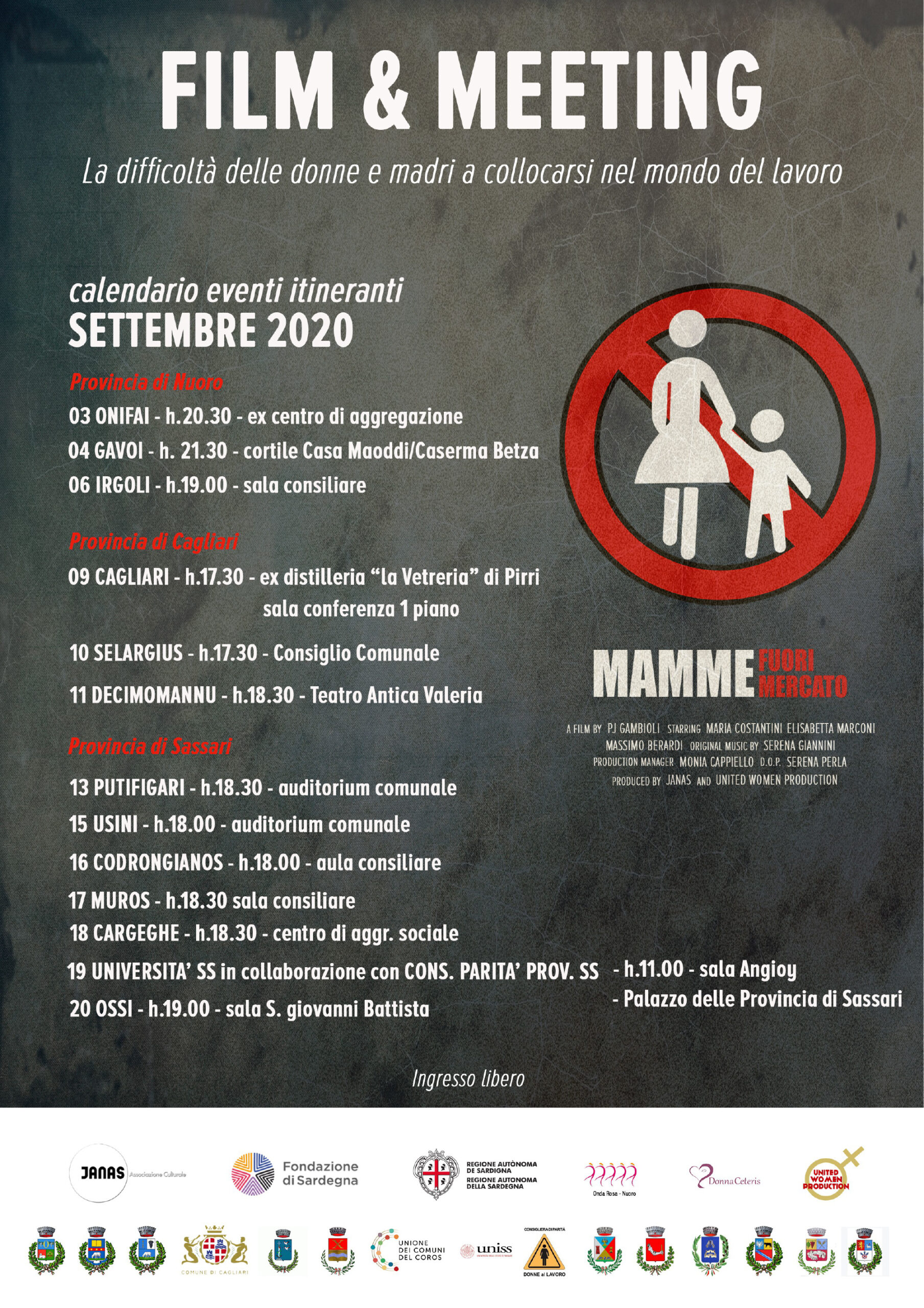 Il progetto ruota attorno al film “Mamme fuori mercato” della regista PJ Gambioli che con le sue immagini vuole sensibilizzare l’opinione pubblica sul tema delle donne, della maternità e del lavoro. Al termine di ogni proiezione, infatti, è stato programmato un dibattito che possa consentire uno scambio di opinioni e una proficua discussione del tema.