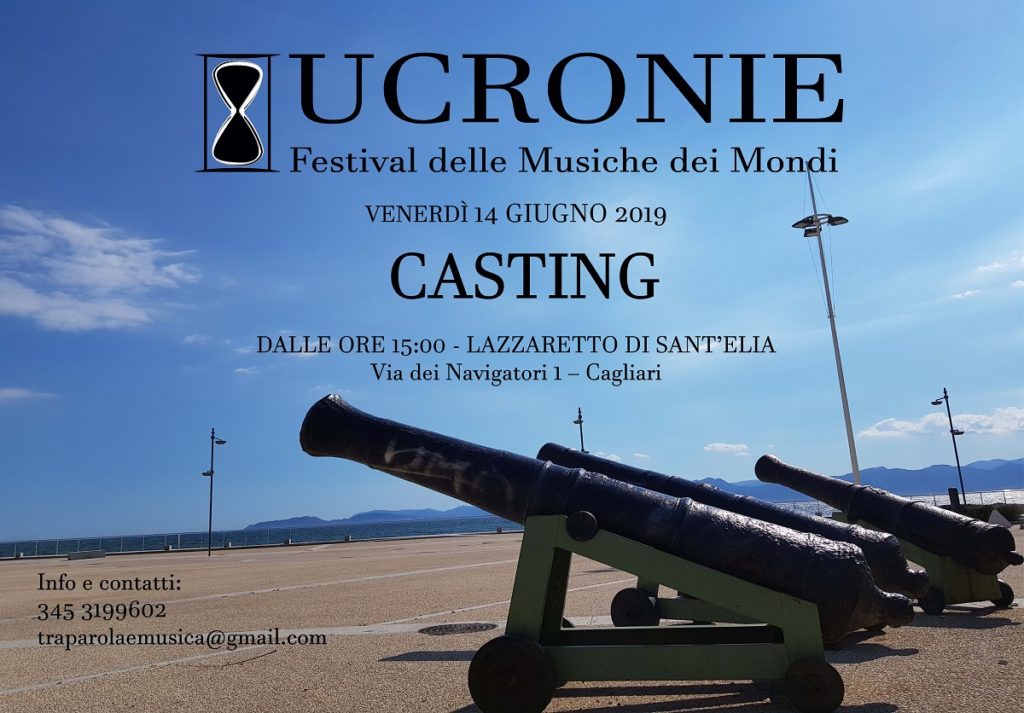 La Casa di Suoni e Racconti, con il supporto della Cooperativa Sant’Elia 2003, dell’Accademia d’Arte di Cagliari e di Spettacolart.it, ha organizzato a Cagliari un Casting in vista della terza edizione del Festival delle Musiche dei Mondi – UCRONIE. Le selezioni sono previste per venerdì 14 giugno 2019 all’interno del Lazzaretto di Sant’Elia (Via dei Navigatori 1) a partire dalle ore 15. L’Associazione Culturale Tra Parola e Musica è alla ricerca di diverse figure per l’evocazione di due Mondi Immaginari, NEXT NERO e NEXT BIANCO, vere e proprie performance artistiche in programma nel mese di Luglio 2019.