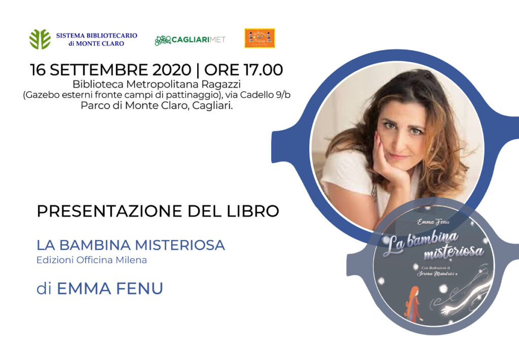 Per la rassegna “Dialoghi di carta”, a cura dell’associazione culturale La Fabbrica Illuminata, mercoledì 16 settembre 2020 alle ore 17 a Cagliari si terrà la presentazione del libro “La bambina misteriosa”, di Emma Fenu, edito da Officina Milena. La scrittrice guiderà grandi e piccini alla scoperta della storia di Sara, con letture e riflessioni; l’attività si concluderà con la realizzazione di un disegno.
