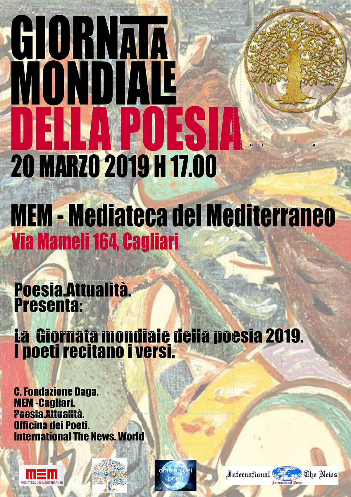L’Officina dei Poeti celebrerà, mercoledì 20 marzo presso lo Spazio Eventi della MEM – Mediateca del Mediterraneo di via Mameli 164 a Cagliari, la Giornata Mondiale della Poesia.