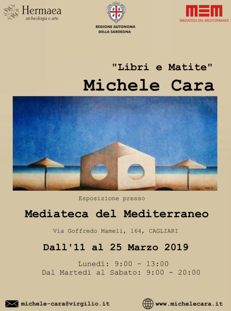 Inaugurata lo scorso lunedì 11, resterà aperta al pubblico fino a lunedì 25 marzo la mostra di quadri di Michele Cara “Libri e matite”, ospitata presso lo Spazio Mostre della MEM – Mediateca del Mediterraneo di via Mameli 164 a Cagliari.