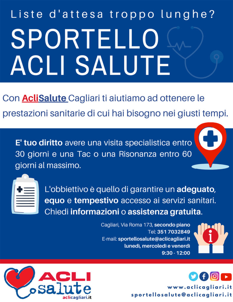 “Uno dei problemi più gravi che attanaglia il sistema sanitario regionale sono i lunghi tempi d’attesa cui i cittadini devono sottostare per ottenere le prestazioni – spiega il presidente di Acli Cagliari Mauro Carta –. Capita troppo spesso che le tempistiche vadano oltre ben oltre quanto previsto dalla normativa e questo non è accettabile: il servizio sanitario è tenuto per legge a erogare le prestazioni in prossimità della residenza e in tempi definiti. Per questo motivo abbiamo deciso di aprire anche a Cagliari lo sportello ACLISalute”.
