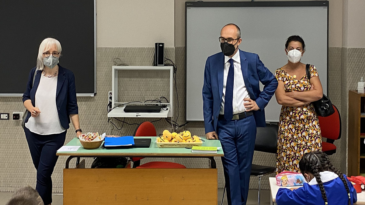 Nella mattina di oggi, martedì 14 settembre 2021, il primo cittadino di Cagliari ha raggiunto, insieme all’Assessora alla Pubblica Istruzione, Rita Dedola, via Meilogu e ha voluto visitare tutte e cinque le classi, dalla 1^ alla 5^ A, scambiando qualche parola con insegnanti e bambini.