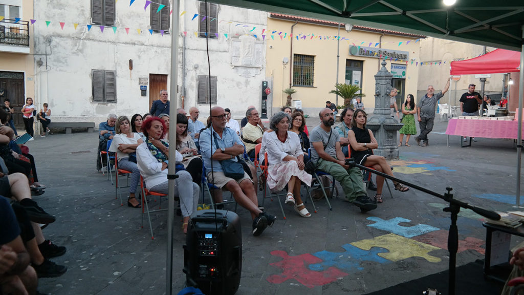 Il festival è proseguito più tardi in piazza municipale, nel cuore del paese, dove è stato il turno dello scrittore Ivo Murgia che, accompagnato dall’editore e musicista Igor Lampis, ha presentato il libro “Il becchino di Varanasi” (“Il cenacolo di Ares edizioni”).