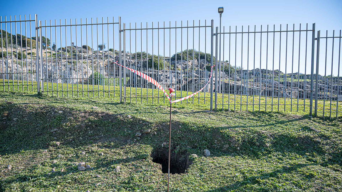 Nella giornata di giovedì 16 dicembre, nel corso degli ordinari interventi di decespugliamento nel Parco di Tuvixeddu, durante il passaggio di un operaio della ditta appaltatrice una ridotta porzione di terreno dell’area interdetta ha subito un cedimento, fortunatamente senza alcuna conseguenza fisica.